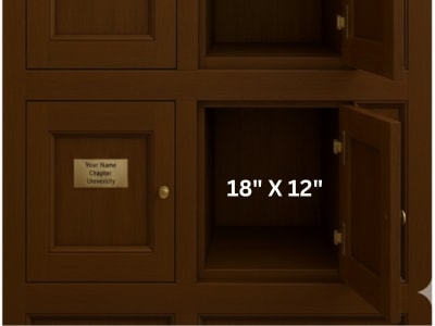 Your name and Chapter engraved onto a fine-wood locker, which will serve as a permanent space to store your Kappa Sigma mementos. The locker can be shared with future generations of your Kappa Sigma family members.